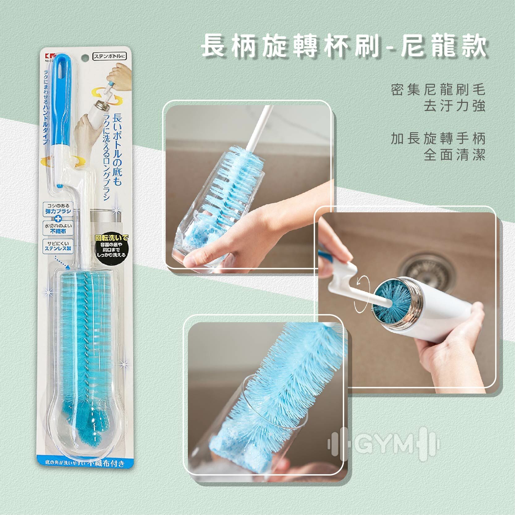 🔸【長柄旋轉杯刷-尼龍】杯子水壺輕鬆刷到底,360°旋轉式更省力