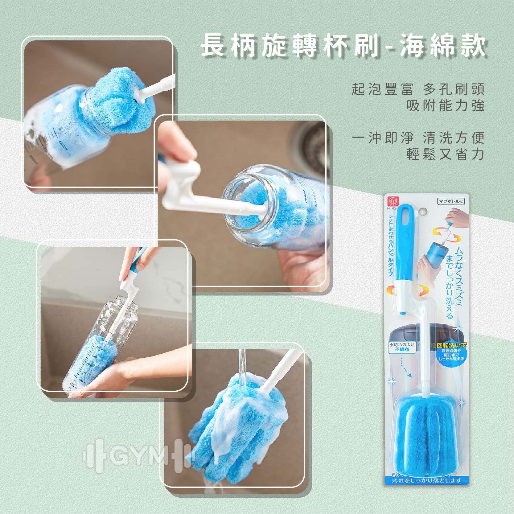 🔸【長柄海綿杯刷】適合各種容器的清潔,一鑑按壓輕鬆替換刷頭!